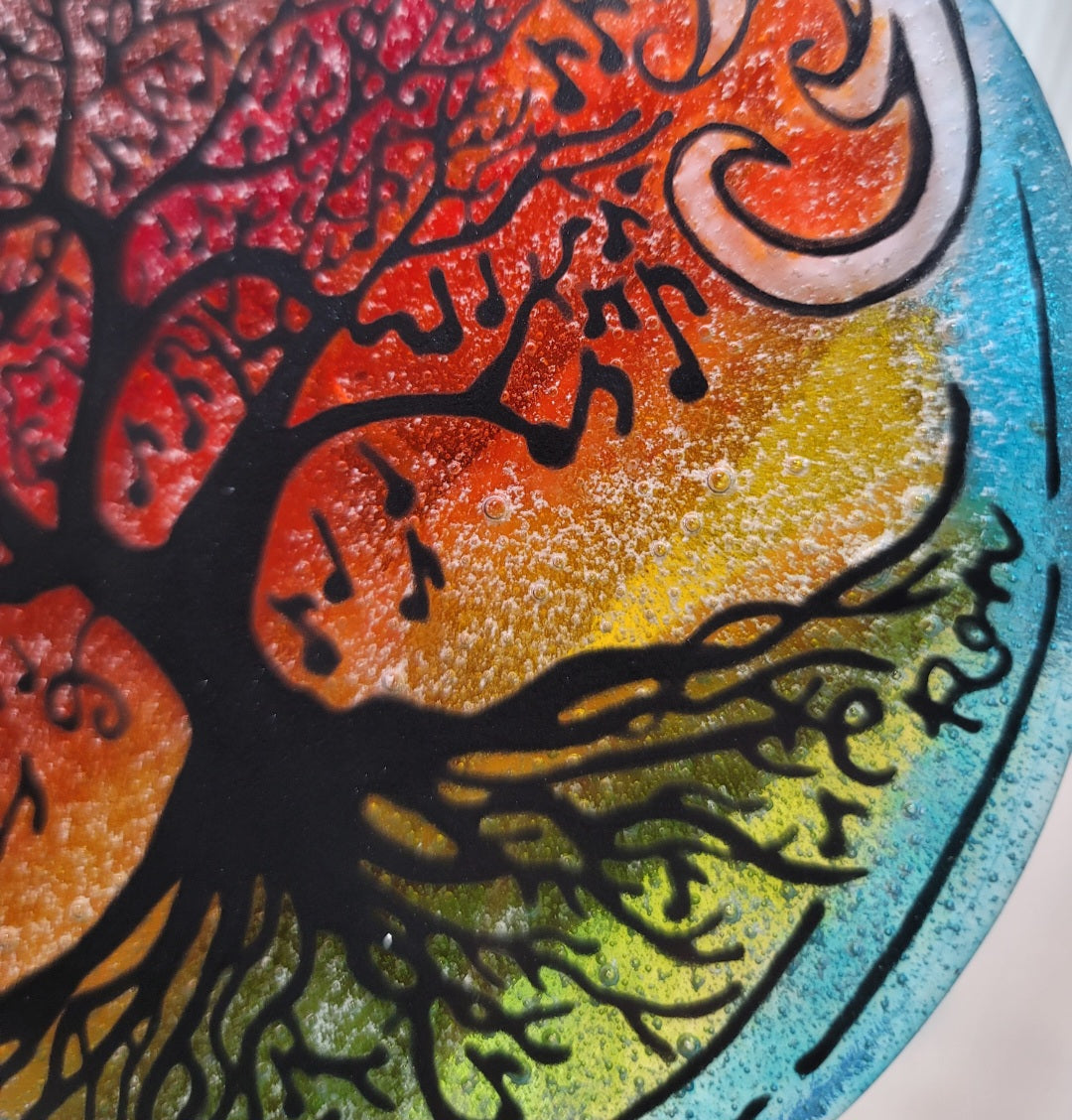 Music Note Tree of Life Ocean Wave 6 inch Table Display Ashes InFused Glass