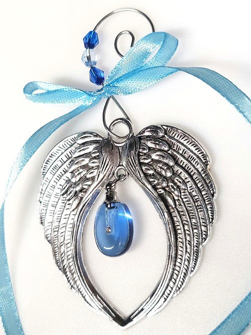 Blue Angel Wing Cremation Urn Christmas Ornament Sympathy Gift