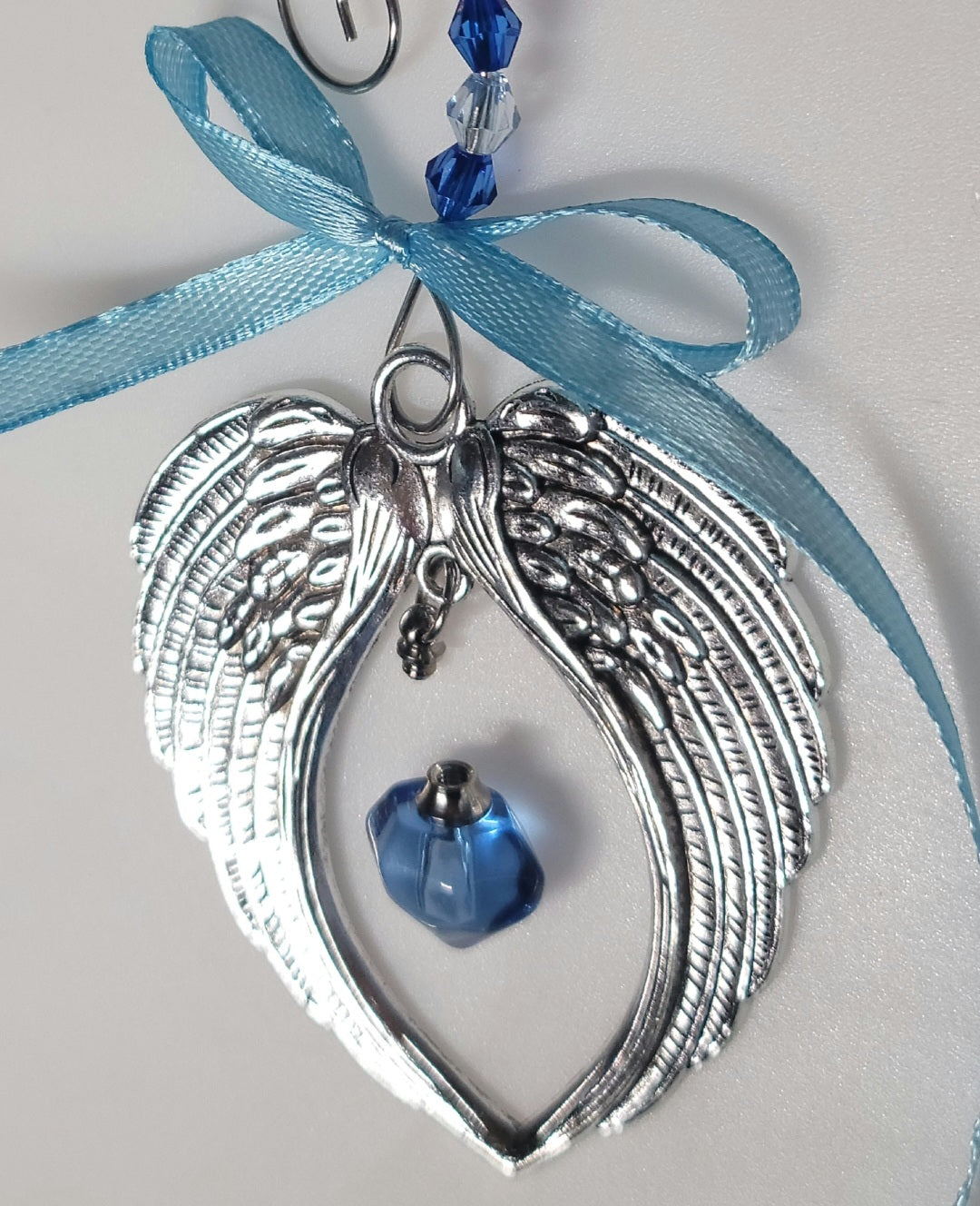 Blue Angel Wing Heart Cremation Urn Christmas Ornament Gift