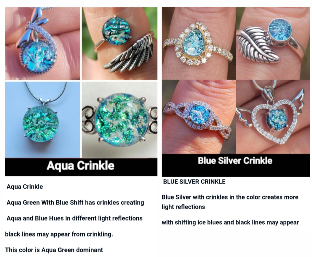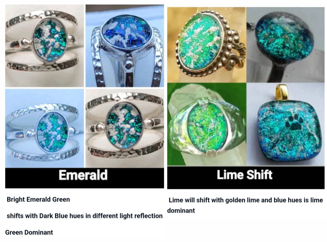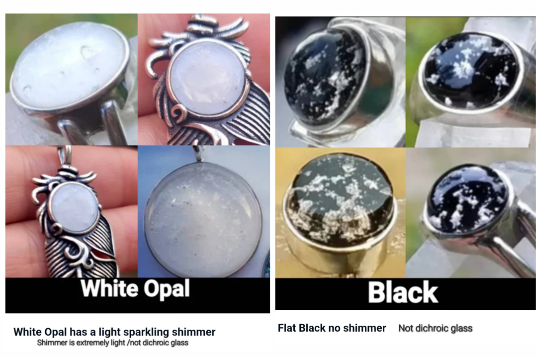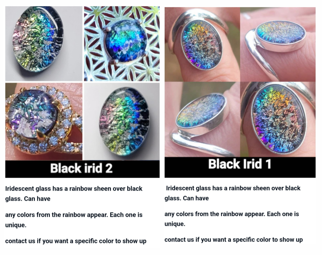 dichroic stones are hand cut and fired, then cold worked to perfection. The process takes days to create. Dichroic Glass is a 100 year old technique perfected by NASA to put in windows of spacecraft..