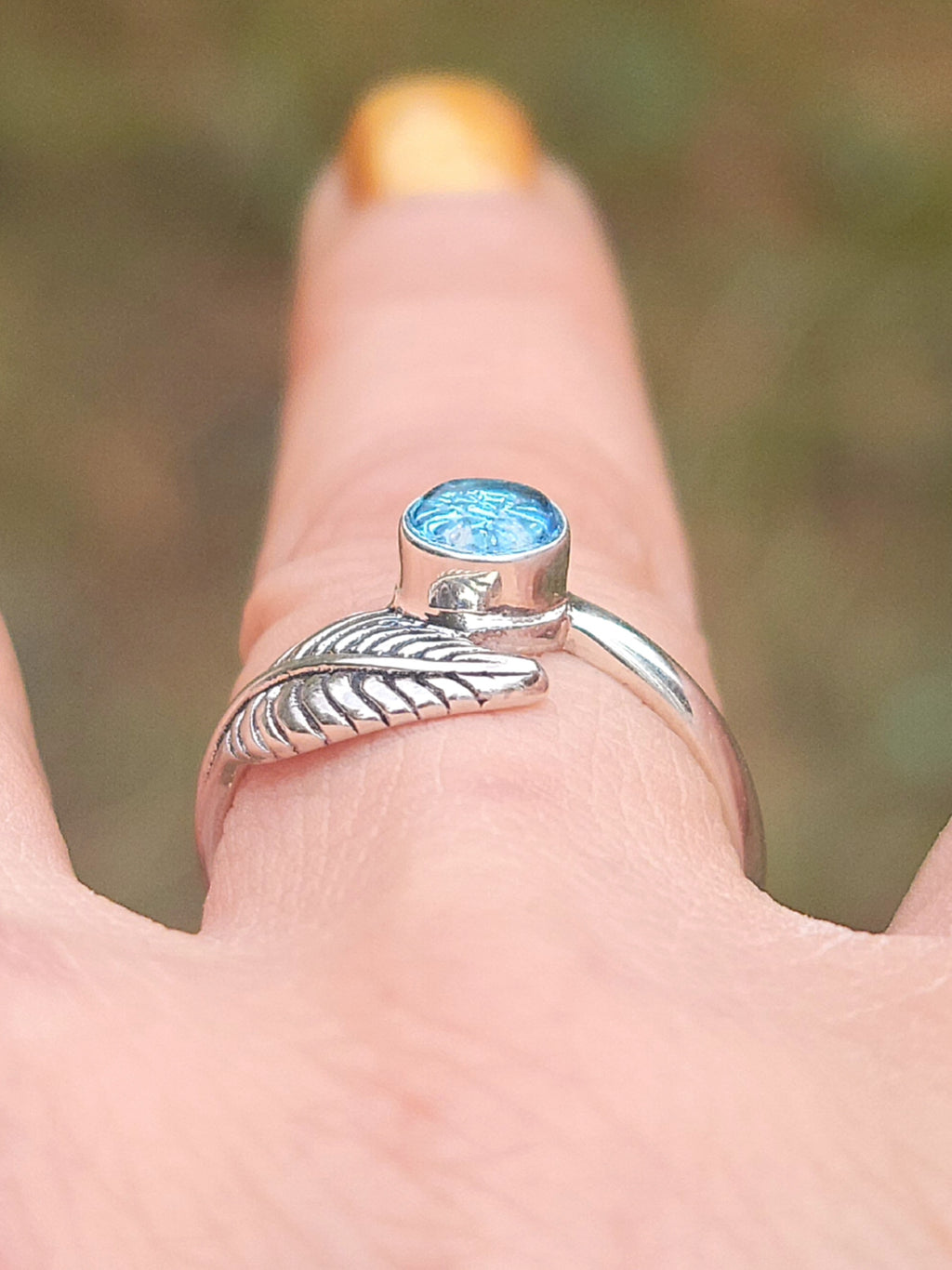CLEARANCE Leaf Cremation Ring Ashes InFused Glass Bali Sterling Silver Urn 7,8,9
